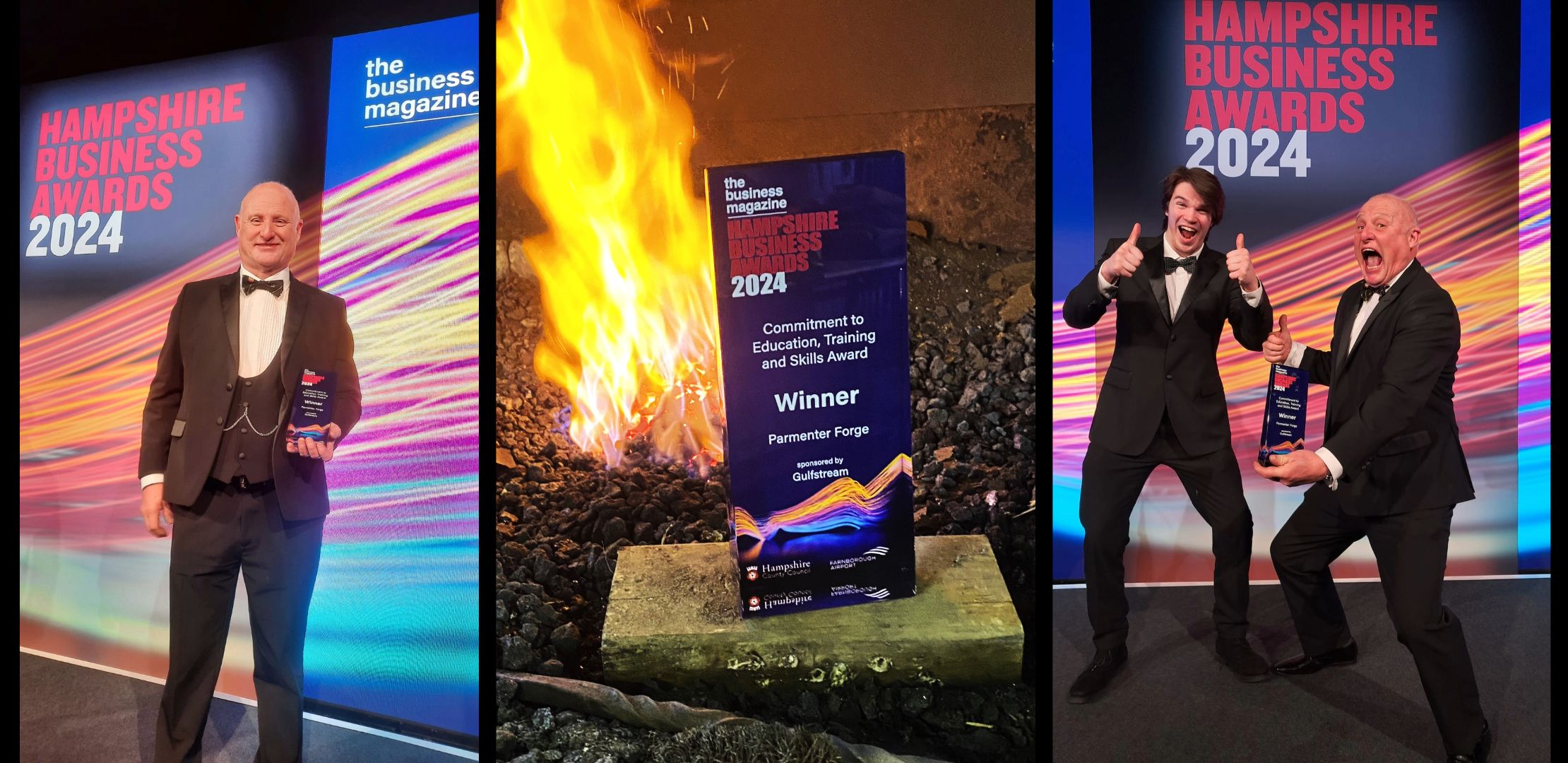 So excited that we won the Hampshire Business Award 2024 for Commitment to Education, Training and Skills! It’s a category which is very close to our hearts. We enjoy sharing our love of blacksmithing with new people, and keeping the craft alive in this way. It’s a real honour as a small craft-based company to have been selected by a panel of successful business folk like the generous sponsors Gulfstream and other major concerns. We’re keen to extend our Teambuilding days to other companies in the area and hope that this award will help that goal.