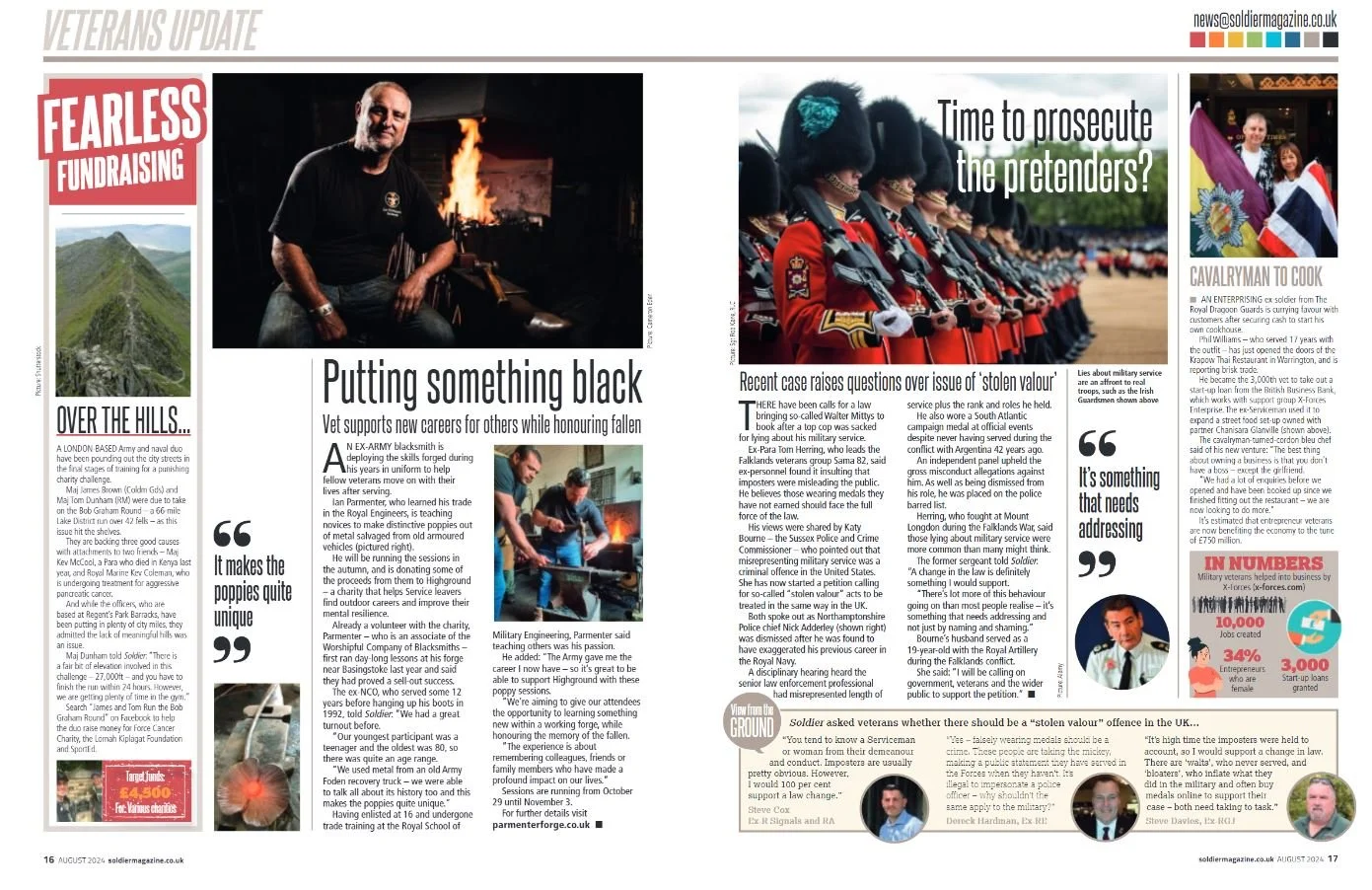 We are gearing up for our 2024 Poppy Courses, and delighted that we are featured in the August edition of Soldier Magazine! Don’t forget to sign up for a Poppy Day at parmenterforge.co.uk/poppy-course